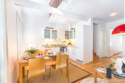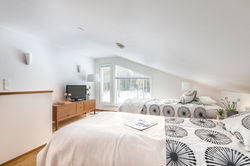 Huoneiston alakerrassa on tupakeittiö, makuuhuone sekä saunaosasto. Lisää tilantuntua ja avaruutta tupakeittiöön tuo parvelle avautuva korkea katto. Yläkerran parvella on lisää majoitus- ja oleskelutilaa. Huoneistossa on iso, katettu terassi, johon mahtuu isompikin ruokapöytä.